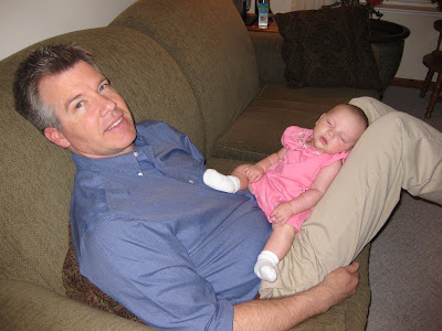 This week Lily and I spent a lot of quality time together smiling and talking. She is awake more often and happier than ever. With a few minor exceptions, her tummy issues seem to be a thing of the past which is wonderful. On Wednesday, my mom and Aunt Gloria came over. They totally spoiled Lily to the point that she cried every time I tried to set her down the next day. Thursday was my birthday and Lily gave me the greatest gift of all- sleep. She only got up once for a feeding between 11pm and 7am and fell asleep immediately after eating. Then we got to take a nap together from 9-11:30 as well. In fact, Thursday night through Saturday night she kept the same schedule of only waking up once for a feeding during those hours. What a blessing! I hope this continues when I return to work! Thursday evening my parents came over at 4pm so I could take a shower then we met Paul at Weber's for a lovely birthday dinner. Lily slept the whole time. Then we came home for presents and cake. Rachel made my cake all by herself with Paul supervising. What a wonderful birthday gift! My parents got me a great new digital camera which I used for all but the first photo on this post and Paul got me a lovely tigereye necklace pendant and a giant new pot for my cactus. It was a very good birthday.